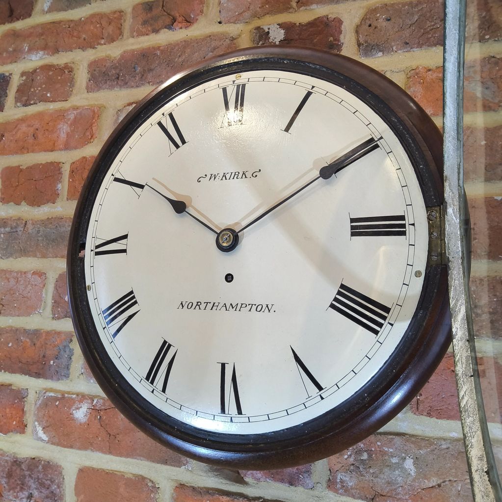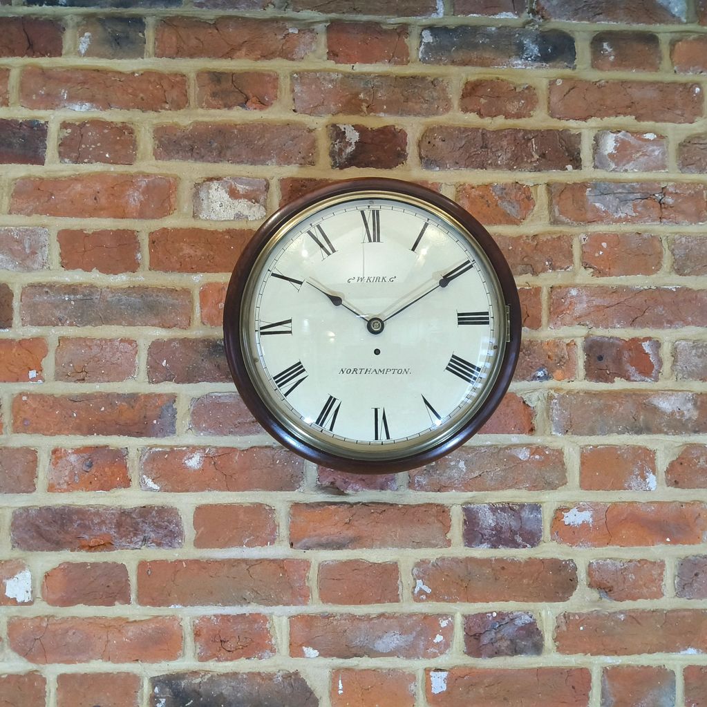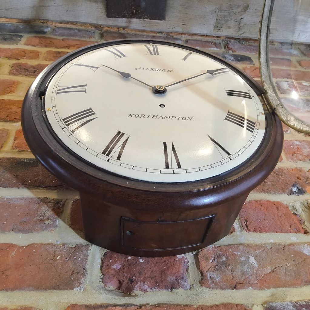Victorian Convex Dial English Fusee Wall Clock, by William Kirk, Nottingham around 1860.